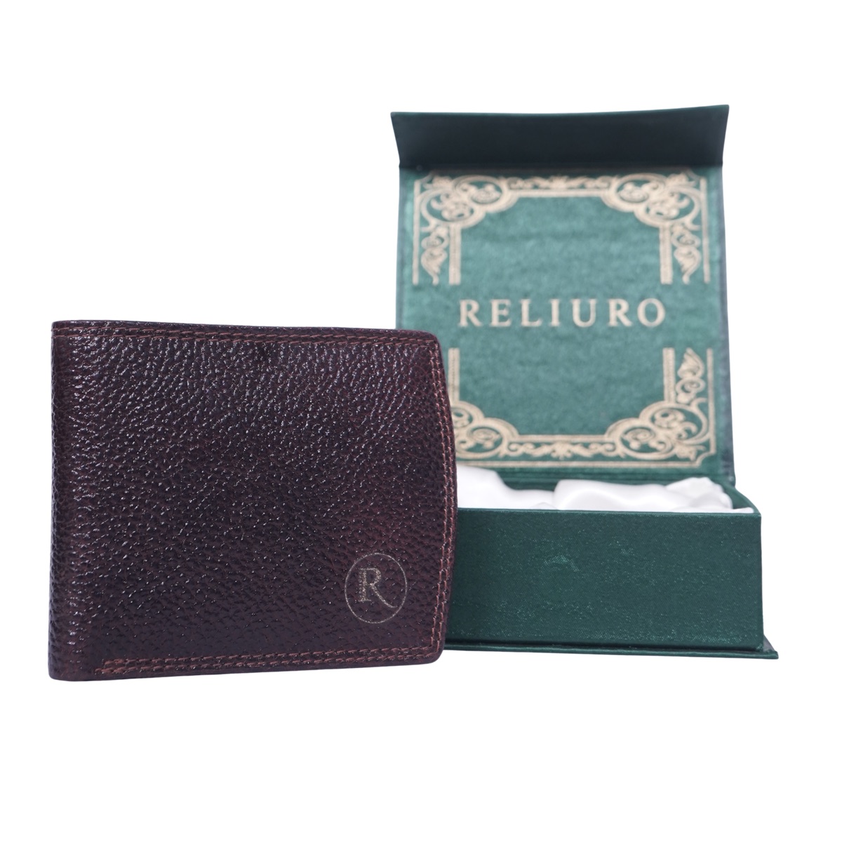 Reliuro Classic Dark Brown Genuine Leather Wallet – Premium Men's Bi-Fold Wallet