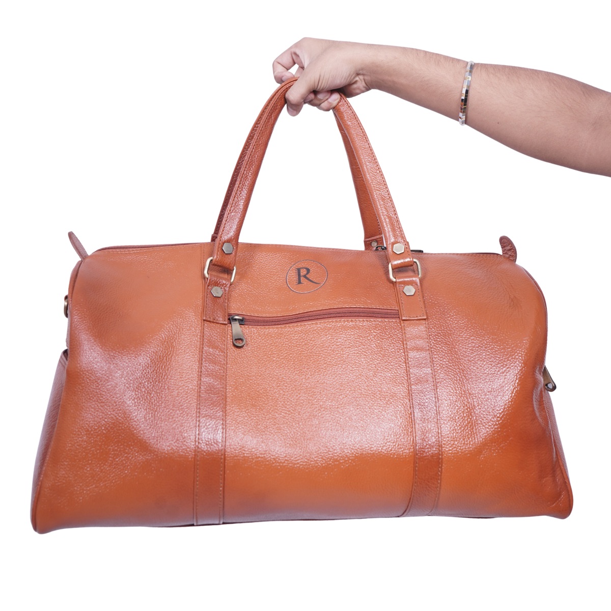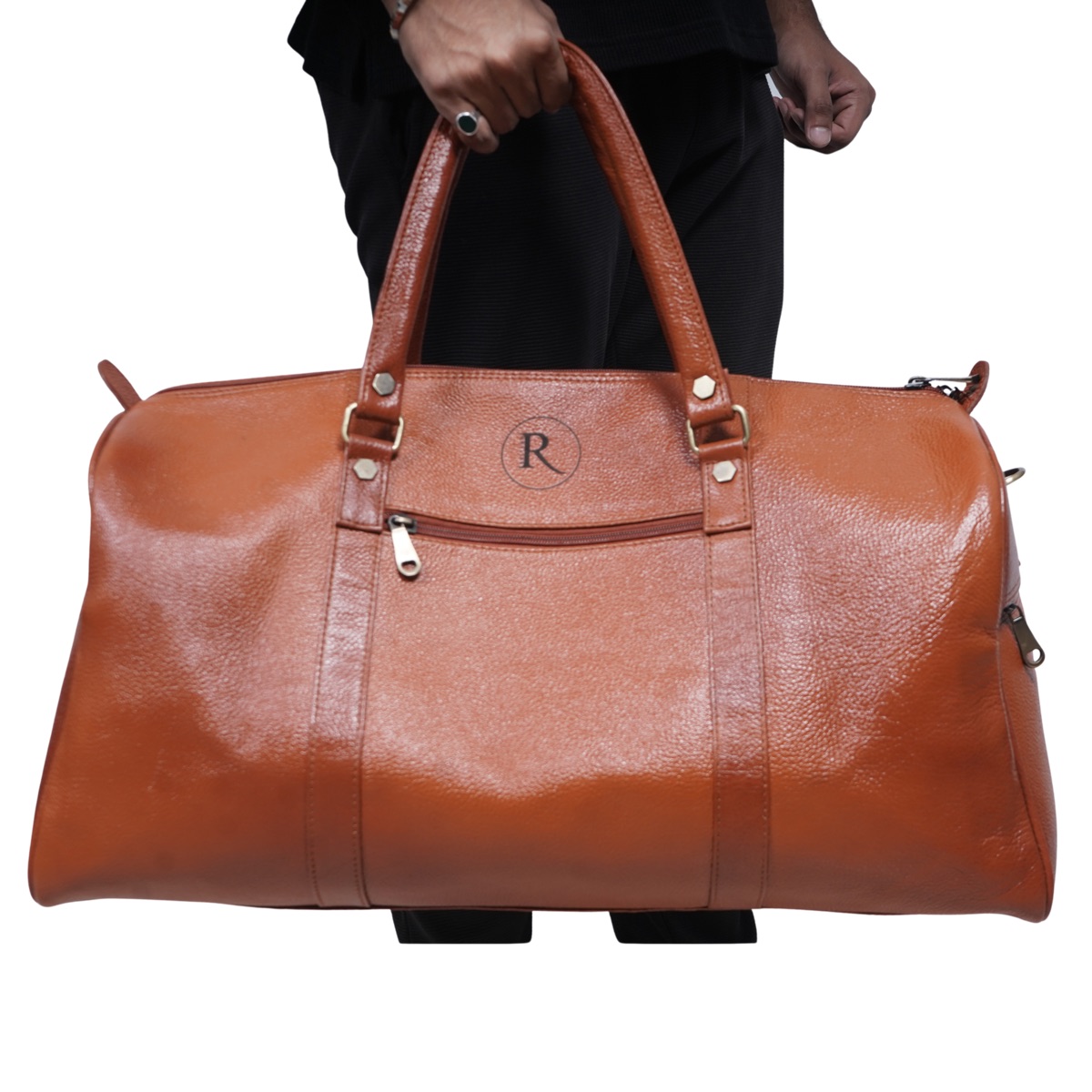 Spacious and stylish duffel bag crafted from premium vegan leather with a shine finish. Perfect for travel, gym, weekend trips, and business travel. The reinforced stitching and high-quality metal zippers ensure long-lasting durability while the stylish embossed 'R' branding adds a premium touch.