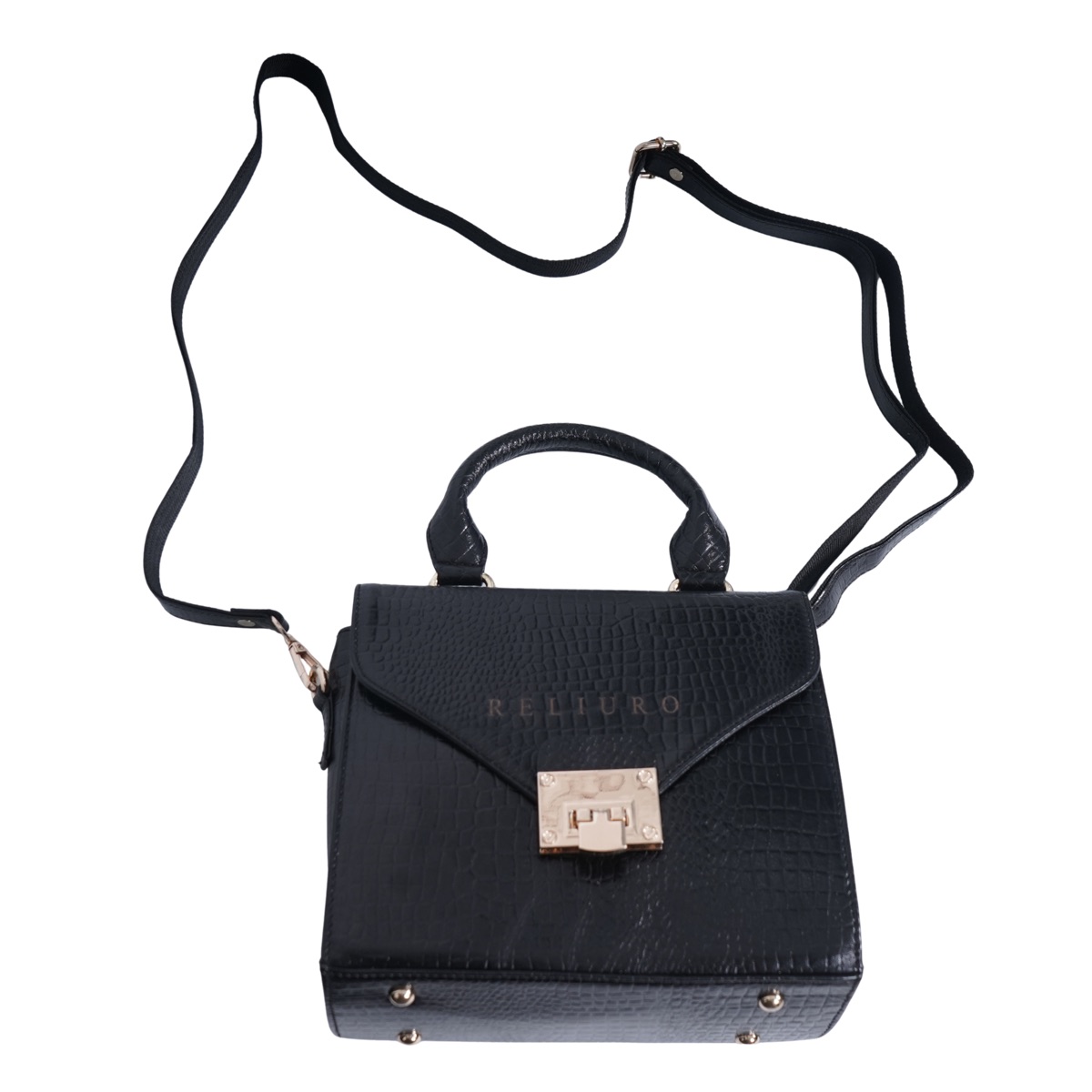 Reliuro Luxe Croco-Textured Structured Handbag - Classic Black